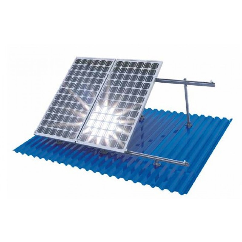 Данный комплект предназначен для монтажа солнечных батарей на плоской или наклонной поверхности (земле, крыше из мягкой черепицы либо металлочерепицы) в один ряд. Регулируемый угол наклона ( от 10 до 15 градусов ), позволяет эффективней использовать батареи, за счет изменения площади воздействия прямых солнечных лучей.