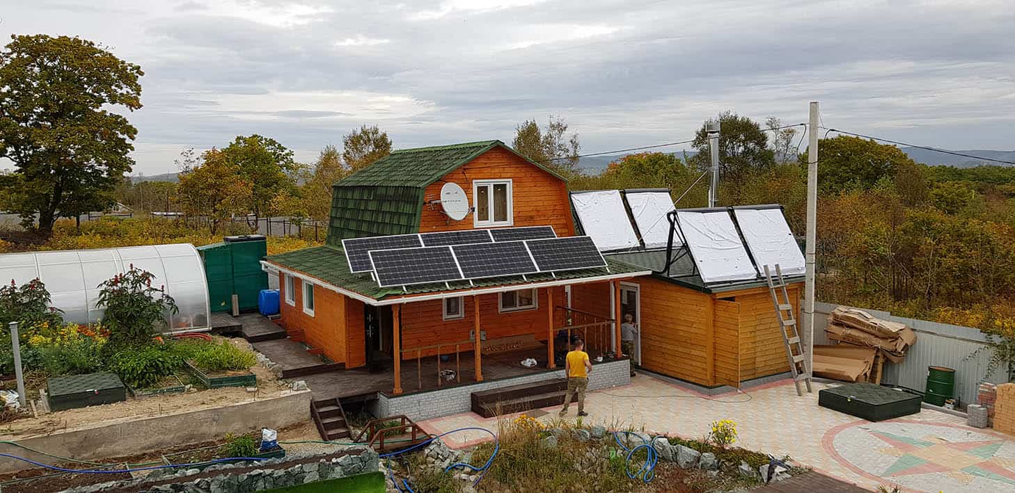 Солнечная электростанция «Дача» подходит для использования как совместно с центральной электросетью ( объект подключен к городской сети ), так и без городской сети ( то есть в условиях полного отсутствия электроэнергии от городской сети ), к примеру небольшие удаленные объекты жилого, хозяйственного или промышленного назначения (дачи, охотничьи домики, бытовки, вахты и т.д.)